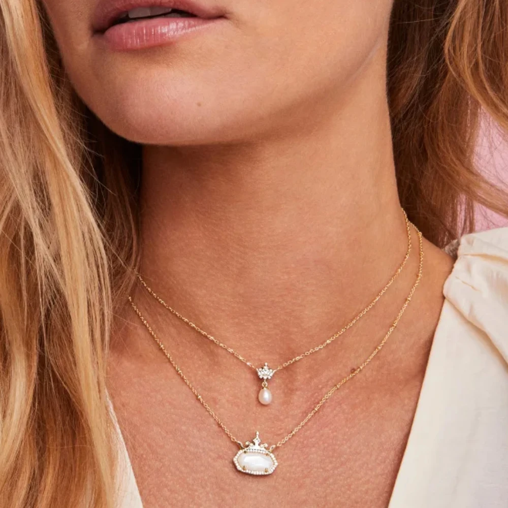 Crafted from high-quality copper and polished in brilliant gold or silver tone, this pendant features a delicate crown design adorned with shimmering accents for a radiant finish. A freshwater cultured pearl drop adds a touch of enchantment, capturing timeless elegance and effortless femininity.